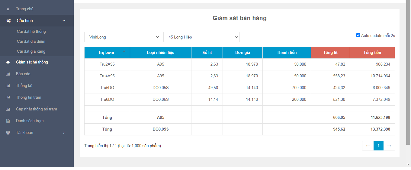 Phần mềm giám sát cột bơm thông qua đường truyền internet có các chức năng: